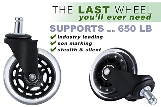 Office Factor Office Chair Wheels, Set of 5 Heavy Duty Chair Wheels, Hardwood Floor Safe, Replacement Wheels for Office Chair, Modern Style, Universal Fit, Suitable for All Flooring and Carpet