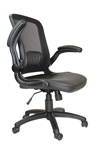 Office Factor Mid-Back Mesh Back Pu Seat, Swivel Ergonomic Task Desk Chair with Flip-Up Arms & Lumbar Support, Black