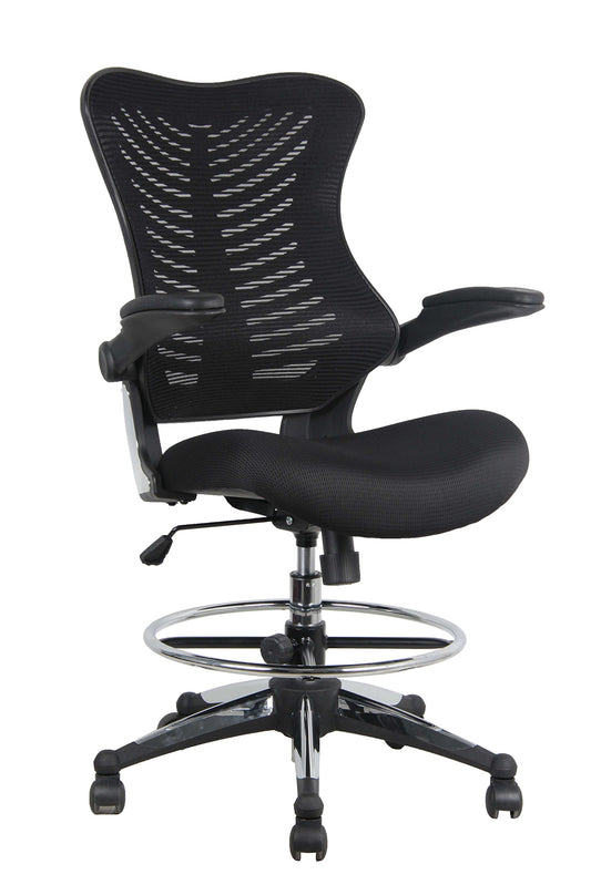 OFFICE FACTOR Stool Clerk Teller Drafting Chair Reception Black Mesh Flip up Armrest Molded Seat with a Single Handle Mechanism (Stool Black MESH Fabric)